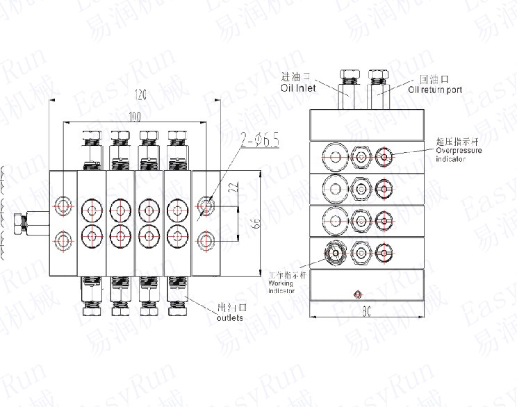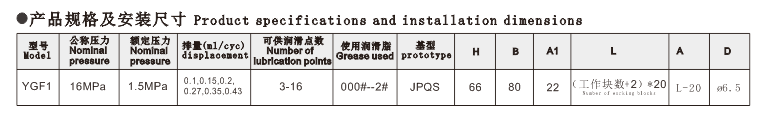 YGF型系列遞進式分配器,是在JPQS(D)型(原型號為VEK.VEM)遞進式分配基型上改進而來。眾所周知,遞進式分配器是一種程序回式路 ,如其中一個油口發(fā)生故障(給油管堵死),則與相關的全部出油口都不能出油、在一些主機I作時不允許中斷潤滑(或因故不能及時檢修)的場合,往往因一個出油口的故障則導致機很多處的損壞。YGF系列遞進式分配器則克服了一般進式分配器的這一 缺點, 即使有個出油口因故障不出油,絕不影響其它相關出油口的正常供油,從而保證了主機的連續(xù)工作。發(fā)生故席的出油口:指示桿會立即給予顯示, 不需要連個檢查,所以檢修工作也非常方便。